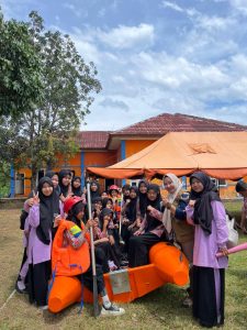 Tak hanya menerima teori, BPBD Lebong juga memberikan pengalaman lapangan yang tak kalah menarik. Para siswa diajak mengunjungi gudang logistik BPBD, melihat langsung peralatan tanggap darurat, menaiki perahu fiber, mencoba mobil dapur umum, hingga mengenakan alat pengapung layaknya relawan sejati.